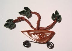 I’ve always been fascinated by the minimalist nature of bonsai art. During my quilling days, when my hands were more nimble and not arthritic, I fashioned bonsai from paper strips.