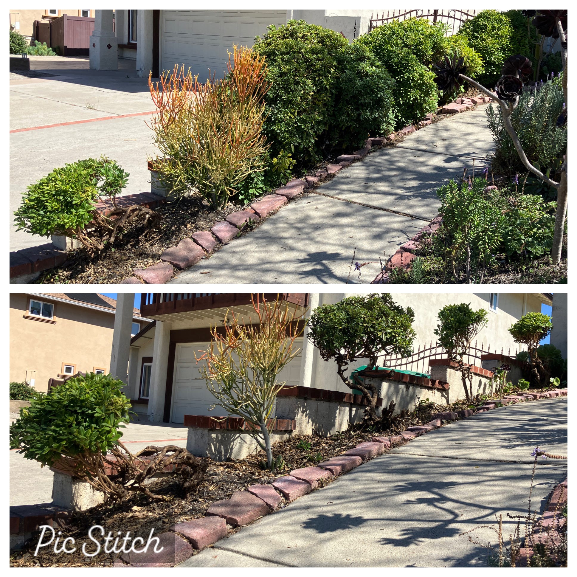 I was heartened and worked on the other bushes. Here’s the before and after: